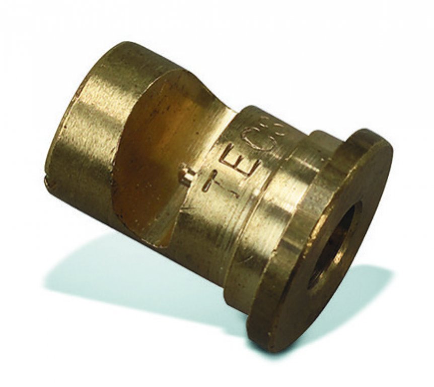 Short, lightweight spray pipe with GEKA coupling for spraying paste-like materials. Thanks to the special nozzle geometry, a small compressor (from an air flow rate of 200 l/min.) is sufficient to achieve a very good spray pattern.